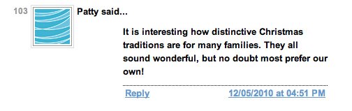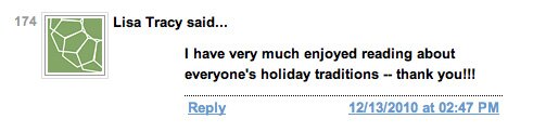 Congratulations and Merry Christmas to all the winners! And thank you to all the great artists for sharing their traditions – I’ve so enjoyed reading all of them.