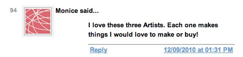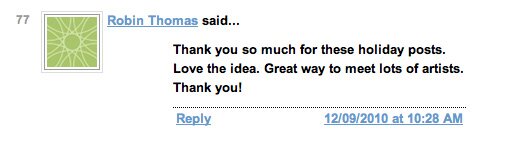 Well am sad i didn’t win but then maybe we all really did as we learned of some great new artists and ive already received something from two of them! Great idea and hope you do it again next year!!! Merry Christmas!!!
