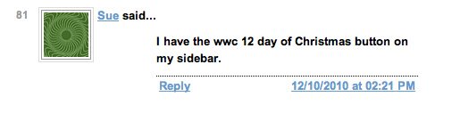 Congrats ladies. Thank you for the 12 Days of Christmas I really had so much fun.