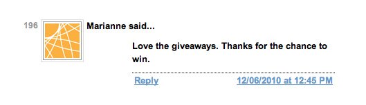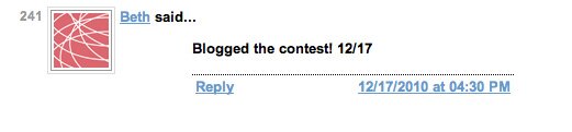 Congrats to all the winners! And kudos to you for making it through such a long post! : )
