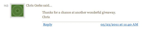 Wow–I’ve never seen your site. I’m now hooked….so cool! Thanks for the chance to win and the introduction to a new fav!