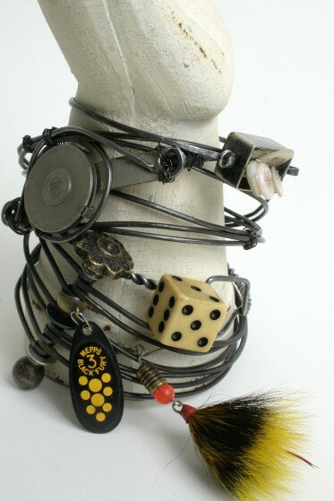 Here’s where you say, “(I’m dizzy) and, what about wire?” And, I say . . . “what’s the natural progression to a flame-o-phobe who has little training in metalsmithing but wants to artistically harness all types of found objects into art you can hang on or about your body?”